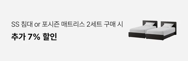 • 포시즌 6, 7 매트리스 + 침대프레임 구매 시 → 포시즌 매트리스 30만원 할인 + 침대프레임 30% 할인