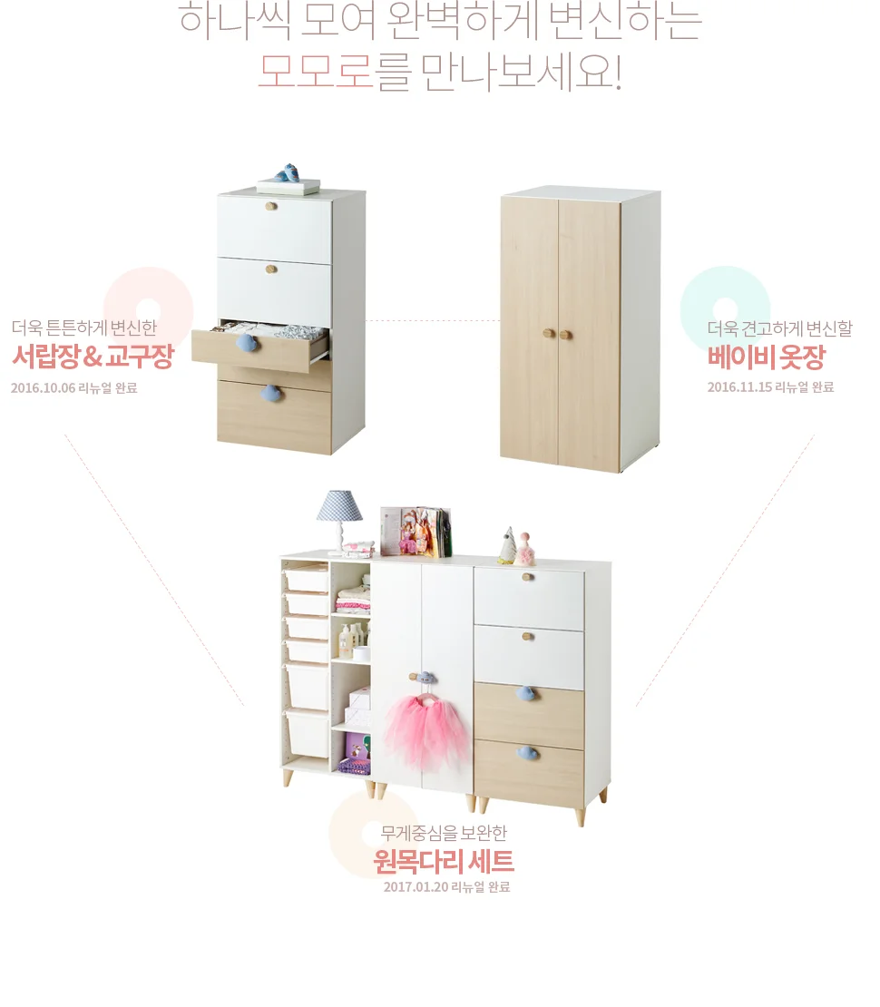 모모로 주니어 옷장 3단걸이 B900 + 샘키즈 수납장 1305mm